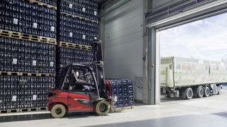 Así pues, el proceso de producción de la empresa familiar no libera a la atmósfera gases de efecto invernadero nocivos para el clima. Un logro más que loable, sobre todo teniendo en cuenta los enormes volúmenes: ¡nada menos que 600.000 litros de agua mineral, zumos de fruta con agua mineral, bebidas deportivas, etc., salen cada día de la nave de expedición de Ensingen! En verano se contabilizan tranquilamente 3,8 millones de litros a la semana. Está claro que para manejar estas cantidades es indispensable una logística de máximo rendimiento. “Para nosotros es esencial contar con carretillas contrapesadas potentes”, explica, como no podía ser de otro modo, Frank Lehmann, director ejecutivo de Ensinger. “Así que estamos encantados con la nueva Linde X35, que como carretilla eléctrica libre de emisiones proporciona una potencia extraordinaria al nivel de los modelos con motor de combustión”.