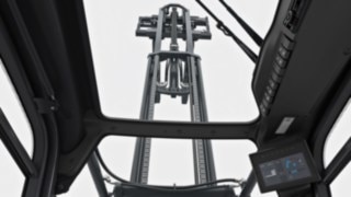 Gracias a la construcción esbelta del mástil, los pilares A estrechos y la chapa frontal baja, el conductor disfruta en una postura sentada cómoda de una visión óptima de la carga y del entorno de la carretilla elevadora.